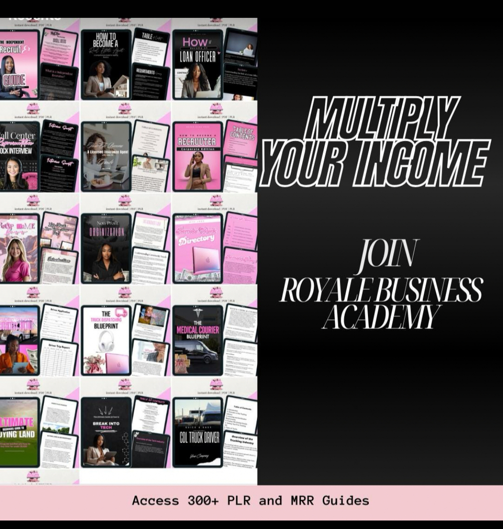 Are you ready to transform your business dreams into reality? Join the Royale Business Academy, the ultimate online community designed for aspiring and seasoned entrepreneurs alike! For a one-time fee, you’ll gain lifetime access to a treasure trove of resources, tools, and expert guidance that will empower you to start, launch, and scale your profitable online or physical business